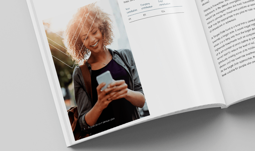 I support the Fidelity sales team and regularly customise standard documents as part of their presentations. This was a bespoke branded pension document produced as part of a pitch for the pension account of Bristol Port Co.