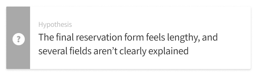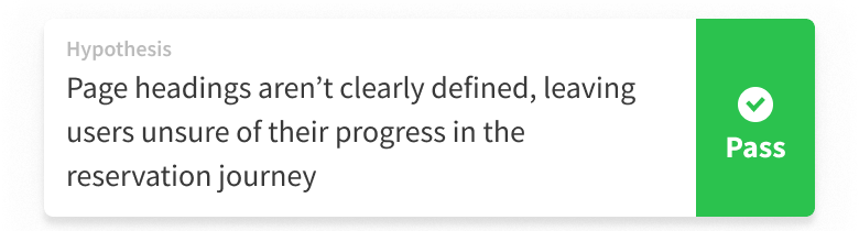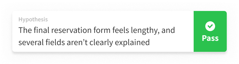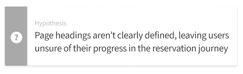 What was in scope were aspects of the key pages throughout the reservation journey, where important steps or info wasn’t easily aparent or didn’t help the user to complete the booking.